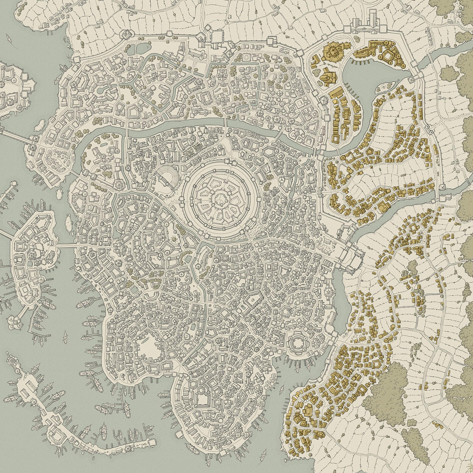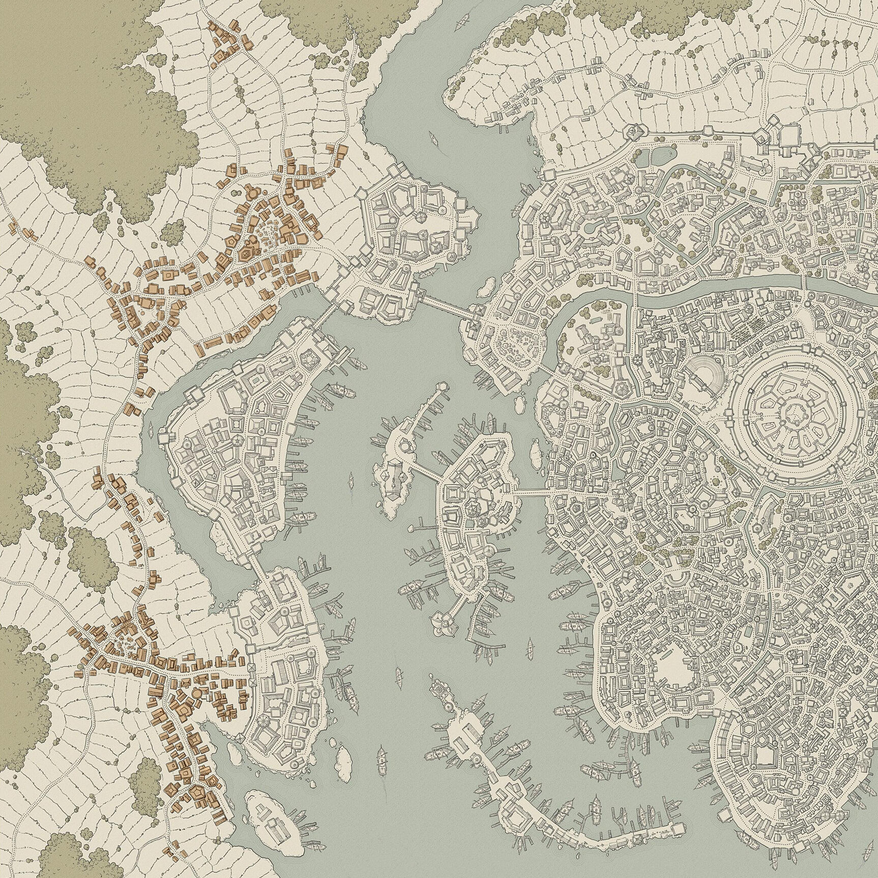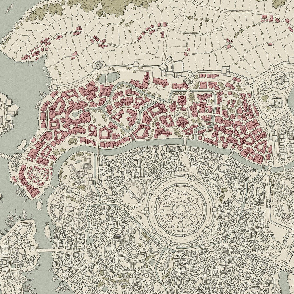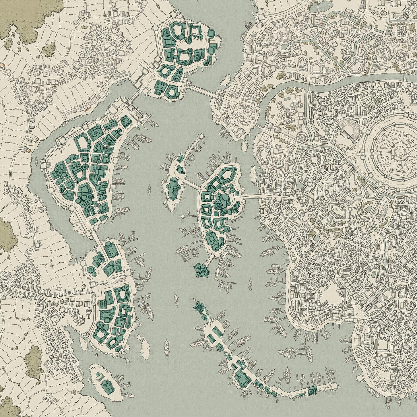 Comprendiendo la mayor parte de la urbe, esta zona se extiende desde los límites de la Ciudad Alta. En este distrito, las razas conviven en un crisol de culturas, formando una amalgama diversa y ecléctica que refleja la verdadera esencia de Thalassia.Desde bulliciosos mercados hasta callejones estrechos y pintorescos, la Ciudad Baja alberga una multitud de comercios, tabernas y talleres que dan vida a sus calles con un vibrante caos ordenado.